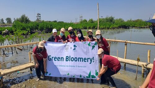 Bloomery Patisserie, perusahaan yang bergerak di bidang Food and Beverages (FnB) dengan spesialisasi produk dessert seperti mille crepe, cookies, dan hampers, melakukan penanaman 700 mangrove di Tambakrejo, Semarang pada 31 Agustus 2024.