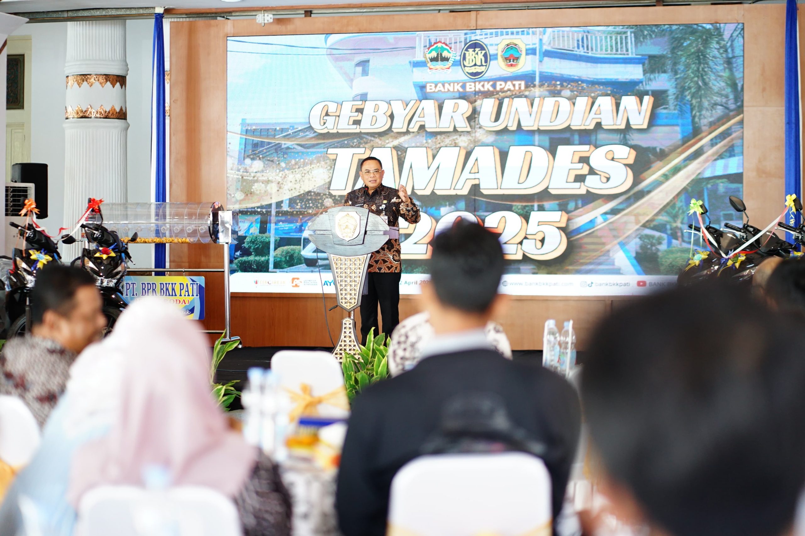 MokiNews.com, Pati-Bertempat di Pendopo Kabupaten Pati, Bupati Pati Sudewo, Selasa (22/4), menghadiri acara undian Tabungan Masyarakat Desa (Tamades) BPR BKK Pati Tahun 2025.