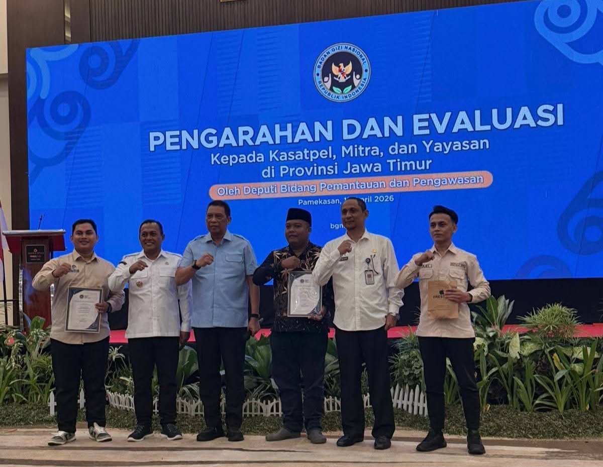 Piagam tersebut di serahkan langsung di depan semua Kepala SPPG dan Mitra se Madura oleh Deputi Bidang Pemantauan dan Pengawasan Badan Gizi Nasional (BGN) Letnan Jenderal TNI (Purn) Dadang Hendrayudha, yang di dampingi langsung oleh Sekda Sumenep dan Wabup Pamekasan.