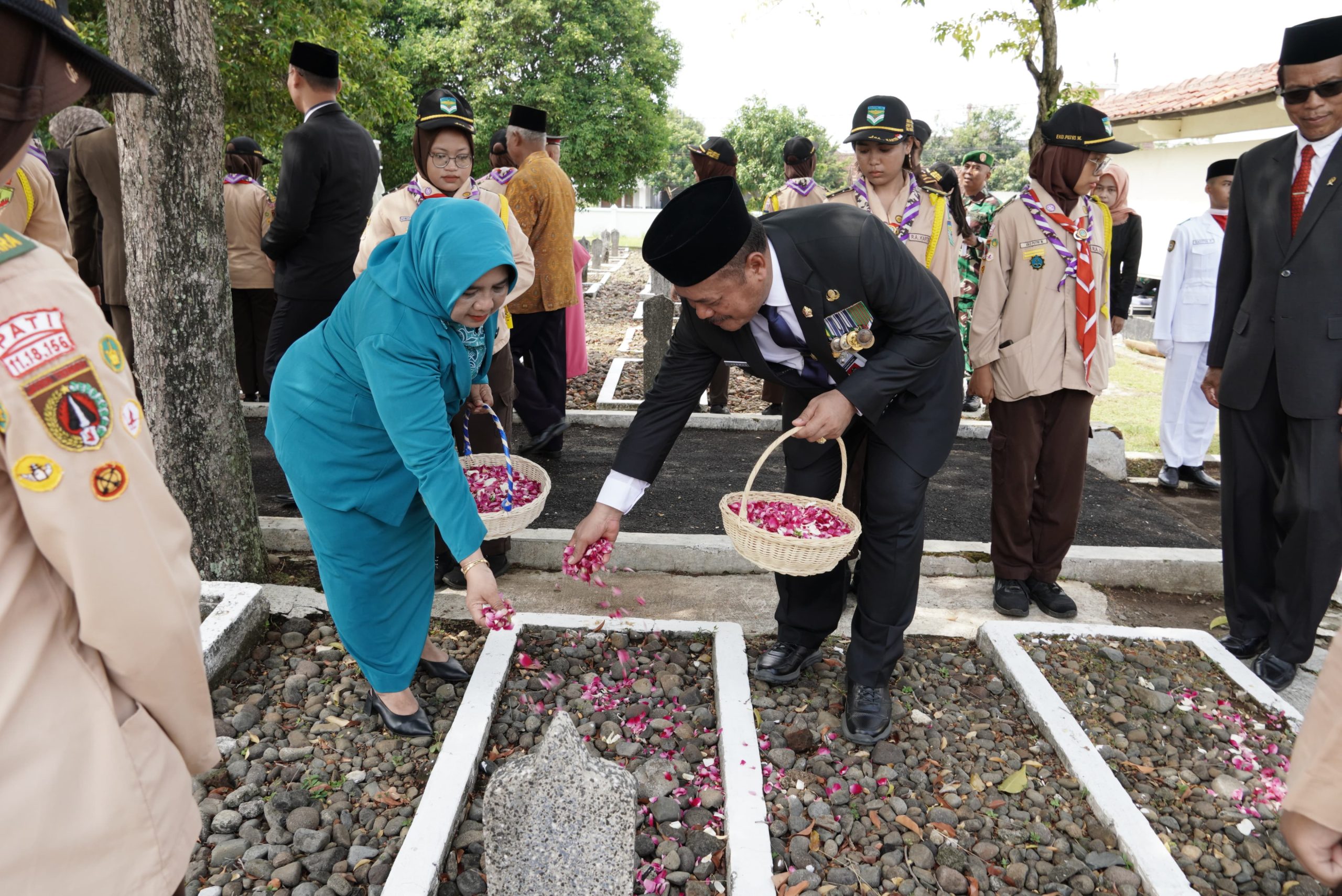 Di penghujung acara, seluruh peserta upacara melakukan tabur bunga untuk para pahlawan yang dimakamkan di TMP Giri Dharma. (Red)