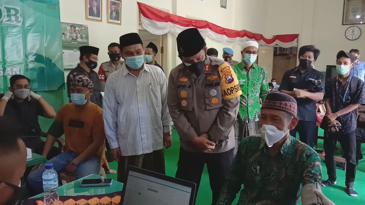 MokiNews.com, Pamekasan – Polres Pamekasan melaksanakan giat Vaksinasi Door To Door kepada Pengurus Cabang Nahdlatul Ulama (PCNU) Kabupaten Pamekasan di Kantor PCNU Pamekasan, di Jl.R. Abdul Aziz No.95 Pamekasan. Hal tersebut sebagai upaya percepatan terbentuknya herd immunity melalui serbuan vaksinasi di tengah pandemi Covid-19, Selasa (3/8/2021).
