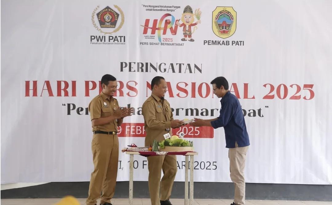 MokiNews.com, Pati – Sekertaris Daerah (Sekda) Pati Jumani, menghadiri puncak peringatannya Hari Pers Nasional (HPN) sekaligus Hari Ulang Tahun PWI (Persatuan Wartawan Indonesia) di panggung terbuka radio suara Pati, Senin (10/02/2025). Acara dihadiri oleh sejumlah pejabat tinggi Pemkab Pati, serta puluhan wartawan dari media online, cetak, dan televisi se-kabupaten Pati.