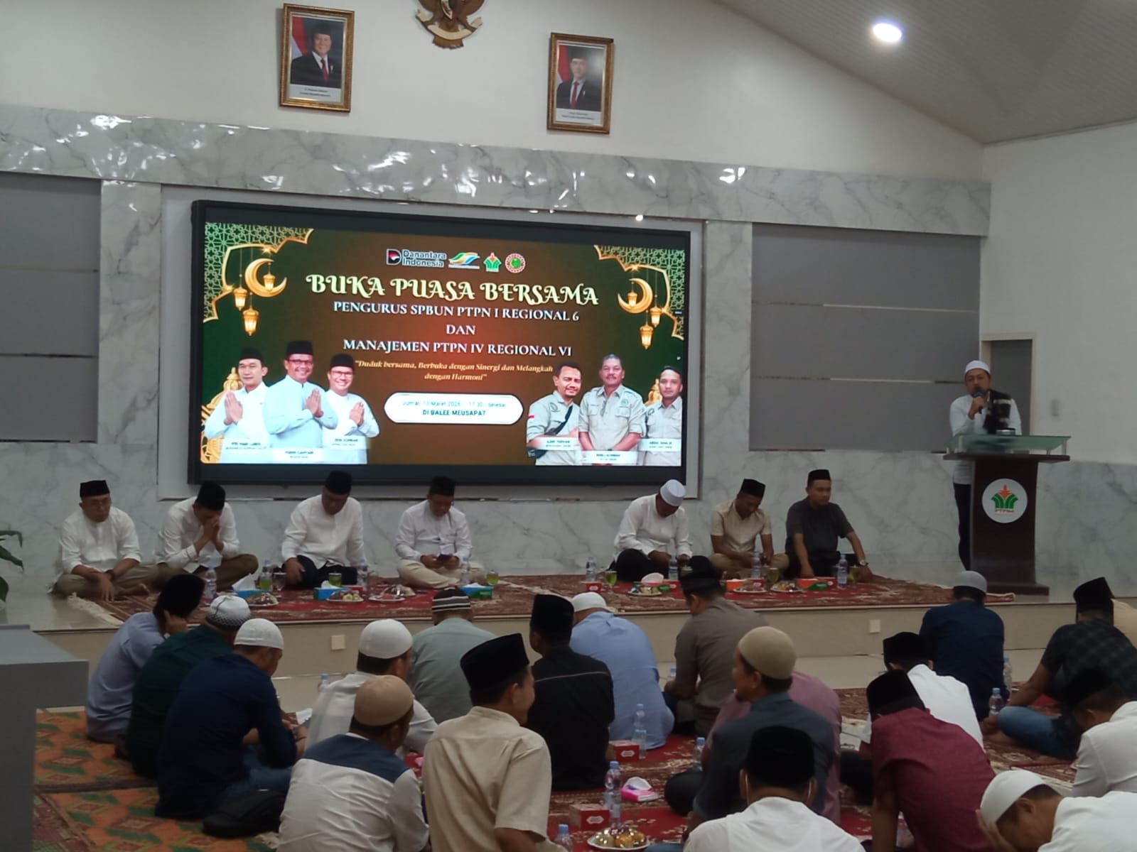 Buka puasa bersama di Aula Pertemuan Bale Meusapat Kantor Pusat Perkebunan PTPN IV Regional VI.
