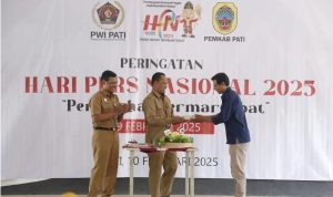 MokiNews.com, Pati – Sekertaris Daerah (Sekda) Pati Jumani, menghadiri puncak peringatannya Hari Pers Nasional (HPN) sekaligus Hari Ulang Tahun PWI (Persatuan Wartawan Indonesia) di panggung terbuka radio suara Pati, Senin (10/02/2025). Acara dihadiri oleh sejumlah pejabat tinggi Pemkab Pati, serta puluhan wartawan dari media online, cetak, dan televisi se-kabupaten Pati.