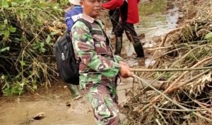 Bersama Warga Masyarakat, Babinsa Awang Terjun Langsung Bersihkan Aliran Sungai