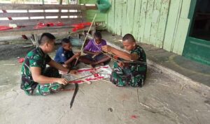 Anak-anak Pedalaman Papua Diajarkan Satgas Yonif 132/BS Membuat Layang-Layang Sendiri