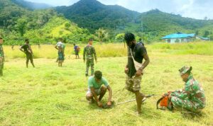 Satgas Yonif Raider 142/KJ Bangkitkan Semangat Pemuda, Ajak Lakukan Pembersihan Lapangan Bola