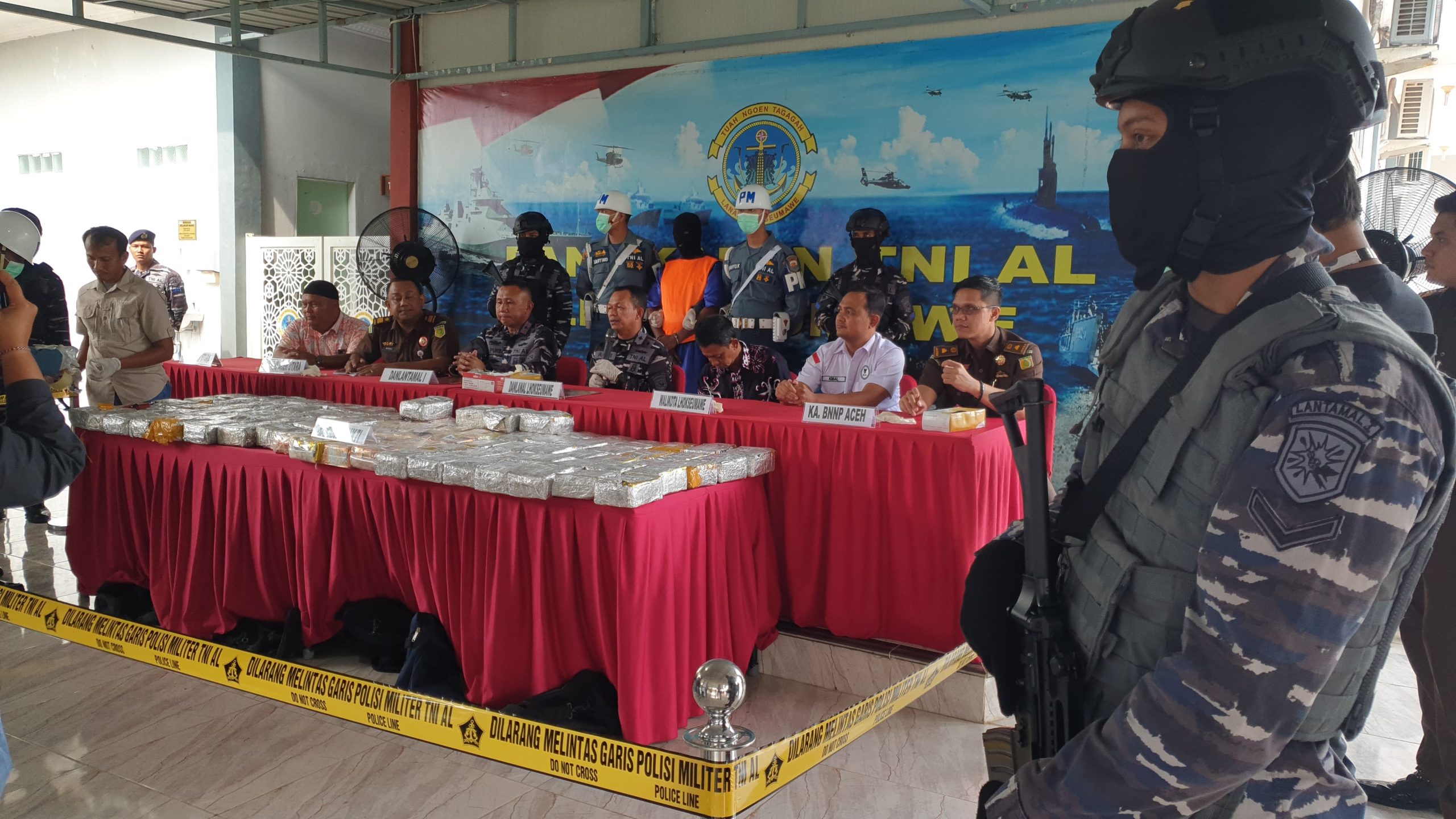 Dalam konferensi pers digelar di Mako Lanal Lhokseumawe, Kamis 6 Maret 2025. keberhasilan Satuan Tugas (Satgas) Reaksi Cepat Armada I Pangkalan TNI Angkatan Laut (Lanal) Lhokseumawe berhasil upaya pemberantasan narkotika di Wilayah perairan Indonesia.